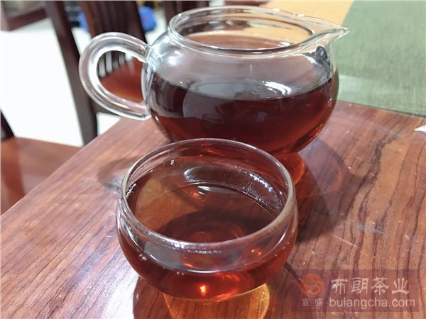 湯色棗紅,圓潤(rùn)而透亮,陳香濃郁,入口便是甜,滑,潤(rùn)。甘甜的茶湯入胃,暖暖的。